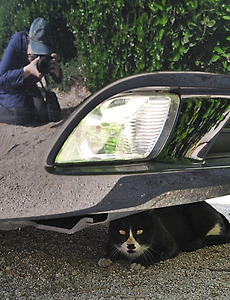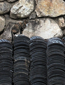 길고양이, 놀잇감 앞에선 애어른 없다 고등어가 갖고 놀던 전선코드에 갈순 아저씨의 예리한 눈이 꽂힙니다. 통통하고 길쭉한 게 꽤 탐나 보입니다. 이미 자기 거라고 방심했던 고등어가 뒤늦게 다가가보지만 늦었습니다. 아니, 게다가 갈순아저씨는 고등어의 장난감에 침까지 묻히는 게 아닙니까. 이미 고등어가 다 침발라놓은 건데... 갈순아저씨 곁에 껌딱지가 되어 붙어앉아보지만, 아저씨는 모른척 딴청만 부릴 뿐 왼손에 꼭 쥐고 도무지 내놓을 생각을 하지 않습니다. 미련이 남아 아저씨의 손을 가만히 보는 고등어의 눈총이 따가운지 외면하는 아저씨 표정이 귀엽습니다. 토라진 고등어가 돌아누워도, 꿋꿋한 갈순아저씨. 그래도 곧 놀잇감을 양보해 주겠지요? 놀잇감에 대한 관심은 오래 가지 않으니까요. 2011. 11. 29. 하수구에 몸을 숨긴 길고양이 오래간만에 길고양이를 만나러 마실을 갑니다. 낙엽이 진 계곡에도 길고양이의 흔적이 있습니다. 폴짝폴짝, 등산이라도 하듯 열심히 산을 오르는 모습이, 뭔가 바쁜 볼일이라도 있는 것처럼 걸음을 재촉합니다. 흰색 털에 노란 점박이무늬라서 어두운 계곡에서 금세 눈에 띄는 길고양이입니다. 아마도 목이 말랐던지, 굳이 물이 흘러내려가는 하수구 쪽으로 슬금슬금 다가옵니다. 고인 물 쪽으로 머리를 가까이하고 다가가 냄새를 킁킁 맡습니다. 하수가 흘러내리는 통로로 얼굴을 쑥 내밀고 갸웃해봅니다. 윗집 사람들이 쓰고 버린 생활하수가 흘러나가는 통로이지만, 길고양이에게는 시냇물이 흘러내리는 신기한 터널처럼 보이는 듯합니다. 하수 통로 안에 자리를 잡고 앉아 낮잠에 빠져듭니다. 고양이는 물을 싫어하는데 뜻밖입니다. 털이 젖어.. 2011. 11. 28. 놀잇감 본 길고양이 반응, 개성따라 달라요 바닥에 뒹굴던 전선 코드를 발견한 길고양이, 표정이 달라집니다. 장난감으로 딱이다 싶었던지 두 손에 그러모아봅니다. 집고양이는 사람이 주는 놀잇감을 갖고 놀지만, 길고양이는 자연에서 발견한 물건을 스스로 놀잇감으로 만들어 갖고 논답니다. 같은 놀잇감을 보아도 고양이마다 반응이 조금씩 다른 것이 재미있습니다. 점박이는 휙휙 앞발을 휘두르지만, 몸을 일으키지는 않고 귀차니스트의 자세를 유지합니다. 앞발만 쭉 내밀어 놀잇감을 움켜쥔 모습이, 향을 피우며 제단에 기도를 올리는 듯하네요. 바닥에 남은 흰색 무늬 때문에 더 그렇게 보이는 건지도 모르겠어요. 똑같은 청소년 고양이이지만, 고등어의 반응은 또 다릅니다. 이것이 무엇에 쓰는 물건인고? 하고 갸웃하는 분위기이다가... "에잇! 먹는 게 남는 거다" 하고 물.. 2011. 11. 25. 마릴린 먼로 닮은 애교점 길고양이 12월 특집기사를 취재하러 다니던 길에, 눈앞에서 뭔가 황급히 툭 뛰어내리는 그림자와 마주칩니다. 젖소무늬 길고양이가 인기척을 느끼고 주차된 차 밑으로 다급히 도망가는 모습입니다. 반가운 마음에 가까이 다가가 봅니다. 자동차 밑에 공처럼 도사리고 있는 녀석. 겁이 많은가 봅니다. 앗, 그런데 차 밑에는 두 마리 고양이가 숨어있습니다. 아까 달아났던 젖소무늬 고양이와, 어둠 속의 또 한 녀석이군요. 젖소무늬 고양이는 입술 옆에 마릴린 먼로의 애교점까지 붙이고 있었습니다. 오대오 가르마도 아니고, 감각 있게 옆으로 비스듬히 탄 가르마에 독특한 매력이 있는 길고양이입니다. 아까 자동차 밑에 있던 녀석은 뭐하고 있나 봤더니, 이렇게 공을 만들어 가만히 관망하고 있네요. 친구 길고양이에게 관심이 쏠리는 틈을 타서.. 2011. 11. 23. '은행나무 절' 용문사에서 만난 길고양이 이사 전후로 바쁜 와중에도 매달 어김없이 잡지 마감은 돌아옵니다. 일부러 시간 내어 길고양이를 만나러 다니지 못하는 시간이 길어지는 만큼, 일하는 중에 오며가며 우연히 만나는 길고양이의 모습이 더욱 반가워지는 때입니다. 먼 길 떠날 때의 고단함을 사라지게 해주는 고마운 존재이기도 합니다. 용문사에 들렀다가 만난 길고양이 한 마리도 그랬습니다. 아마 기와불사 하느라 쌓아놓은 기와인 듯한데 저와 눈이 마주치자 기와 더미 위로 훌쩍 뛰어 올라갑니다. 한 발짝 더 뛰어올라 오도카니 선 길고양이입니다. 인기척은 신경이 쓰이는지 잽싸게 언덕으로 올라가버립니다. 휴대형 소형카메라로는 희미하게밖에 담을 수 없는 것이 안타깝습니다. 고양이 삼색털이 좋은 보호색이 되어주네요. 용문사는 수령이 천 년이 넘는 은행나무로 .. 2011. 11. 17. 길고양이 블로거를 보는 길고양이 표정 "애쓴다" 이삿짐을 풀다 보니 '정말 치마가 한 장도 없구나' 하는 생각을 다시 하게 됩니다. 원래도 치마가 거추장스러워 교복 이후로는 잘 입지 않았지만, 길고양이를 만나러 다니면서부터는 더더욱 치마를 입지 않게 됐습니다. 길을 가다가도 길고양이를 만나기만 하면, 걸핏하면 땅바닥에 주저앉거나 눕거나 하면서 사진을 찍으니 치마란 역시 불편하지요. 이 날도 차 밑으로 기어들어가 숨는 길고양이를 찍는데, 거울처럼 반사된 차 표면에 사진 찍는 제 모습이 찍혔습니다. 사진 찍을 때는 고양이에만 관심을 쏟느라 표면에 반사된 제 모습은 눈에 들어오지 않았는데, 집에 와서 사진을 옮기면서 보니 
