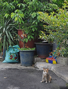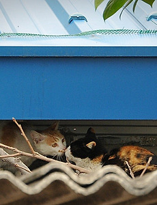 햇볕이 만든 '길고양이 무지개방석' 오래된 골목을 채우는 것은 크고 작은 화분입니다. 숲이 사라진 그 자리에 화분으로 정성껏 꾸민 화단이 눈을 편안하게 합니다. 사람의 손길이 닿은 골목을 걷다 보면 기분이 좋아집니다. 그렇게 만들어진 화분 숲 앞에, 길고양이 한 마리가 멍하니 있습니다. 노란 바탕에 흰색 앞가슴과 자잘한 검은 얼룩무늬가 있는 카오스무늬 고양이의 일종이네요. 길고양이는 한동안 자리를 뜨지 않고 저를 말똥말똥 바라봅니다. 태양이 카메라를 마주보고 있는데 렌즈후드를 가지고 오지 않아서, 그대로 찍다보니 빛이 반사되어 옅은 무지개가 아른아른 사진에 같이 찍힙니다. 여느 사진에서라면 ‘버린 사진’으로 간주해야 하겠지만, 길고양이 앞발 쪽에 고이 깔린 무지개를 보니 이대로도 괜찮겠다 싶습니다. 햇볕이 만들어준 길고양이의 무지개 방석입.. 2011. 5. 19. 지붕 밑 길고양이, '은밀한 만남' 현장 길고양이 두 마리가 지붕 밑 은신처에서 은밀한 만남을 갖고 있습니다. 조심스레 속닥이는 모습이 뭔가 비밀스런 일이라도 벌이는 듯하네요. "음 은신처까지 미행한 인간은 없는가 잘 확인했겠지?" "네, 삼색대장님! 걱정 마십쇼." 노랑이는 이미 뭔가 속닥속닥 보고를 시작하는데, 그래도 안심되지 않는 삼색대장의 눈은 주위를 두리번거리고 있습니다. "헛! 인간이다!" 경계하던 삼색 대장의 눈이 인간을 발견합니다. "쯧쯧...그렇게 잘 살피라고 했건만...자네가 잘 처리하게." 삼색대장은 고개를 획 돌리며 외면합니다. 갑작스런 미행에 당황해 어쩔 줄 모르는 노랑둥이가 삐질 흘리는 식은땀이 보이는 것만 같습니다.^^ 2011. 5. 18. 초여름 졸음 쫓는 길고양이, 시원한 하품 한낮에는 반소매 옷을 입어도 어색하지 않지만, 아침저녁으로는 가끔 쌀쌀해 감기 걸리기 쉬운 요즘입니다. 가만히 앉아있으면 나른해져 졸음이 오기 쉬운 때이기도 합니다. 나른한 오후, 길고양이는 무엇을 하며 쉬고 있을까요? 밀레니엄 지붕고양이를 만나러 가 봅니다. 지붕에 앉아 쉬는 길고양이들의 자리는 너무 멀고 높아서 '가까이 하기엔 너무 먼 당신'이지만, 그런 안전거리 덕분에 길고양이들이 방심한 상태로 시간을 보내는 모습도 볼 수 있습니다. 나뭇가지 사이로 솔솔 바람이 불어오는 오후, 고양이도 저도 오래간만에 여유를 즐겨봅니다. 이 평화가 오랫동안 깨어지지 않았으면 좋겠습니다. 앗, 눈이 딱 마주쳤습니다. 지붕 고양이 일족 중에서도 겁이 유독 많은 짝짝이 같으면 눈이 동그래서 벌떡 일어났을 텐데, 이 녀석.. 2011. 5. 14. 사람을 두려워하는 검은 길고양이 화단을 지나는데, 검은 비닐봉지 같은 것이 둥글게 뭉쳐져 있는 것이 보여 눈길을 돌립니다. 비닐봉지인가, 고양이인가 긴가민가해서 한참 바라보니 귀끝이 뾰족합니다. 검은 고양이가 낮잠을 자고 있었군요. 살금살금 다가가 봅니다. 고양이는 화들짝 놀라 화단 수풀 속으로 숨어버립니다. 숨었으면서도 호기심은 어쩌지 못해 금방울처럼 동그란 눈으로 이쪽을 빤히 봅니다. 어둠 속에서 커다란 눈동자만 댕그랗게 빛납니다. 모두가 검은 털옷 사이로 더욱 반짝이는 황금빛 눈동자는, 검은 고양이 특유의 매력 포인트입니다. 그러나 이쪽이 사랑스런 눈으로 바라보고 있다는 것도 알지 못한 채, 검은 고양이의 눈은 겁에 질려 있습니다. 검은 고양이라고, 흉물스럽다고 돌을 던졌을 사람들의 시선이 검은 고양이의 겁먹은 시선에 모두 담겨 .. 2011. 5. 11. 봄나들이 나선 아기 길고양이, 야무진 얼굴 아직 어린 길고양이 한 마리가 봄나들이를 나왔습니다. 엄마 고양이는 어디로 먹이를 구하러 간 것일까요? 아기 혼자 햇볕을 쬐고 있습니다. 조그만 벽돌로 쌓은 나지막한 담도, 어린 길고양이에게는 높아만 보입니다. 사람을 발견하더니, 제 몸을 지키겠다고 야무진 하악질을 해봅니다. 귀가 열리고 이빨이 났으니 젖은 뗐을 테지만, 아직 변하지 않은 눈동자색을 보아 아직은 어린 고양이입니다. 삼색 고양이니까, 지금은 파란 눈동자색도 곧 호박색이나 연두색으로 변할 것입니다. 제가 꼼짝 않고 앉아 기다리니, 어린 고양이도 경계심을 풀었는지 해맑은 표정으로 꽃향기를 맡아봅니다. 하루 중 대부분의 시간을 잠으로 보내는 아기 고양이는 그만 스르르 잠이 듭니다. 햇볕을 온몸으로 받아먹고, 잠이 주는 에너지를 몸에 가득 채워서.. 2011. 5. 9. 서먹한 길고양이들, 화해하는 법 노랑아줌마와 카오스 대장, 두 마리 길고양이 사이에 정적이 흐릅니다. 바로 곁에 있으면서도 다른 곳을 바라보는 모습이, 마치 작은 일로 싸우고 토라져 외면하는 모습처럼 약간은 서먹해 보이기도 하고, 한편으로는 '이 다음에는 어떻게 될까' 하는 긴장감이 느껴집니다. 무슨 일이 있었던 것인지 알 수 없지만, 호기심 어린 마음으로 다음 사건을 기다려봅니다. 그 묘한 정적을 견딜 수 없었던지, 좀 더 살가운 노랑아줌마 쪽이 먼저 화해의 박치기를 시도해 옵니다. 고양이 박치기란, 좋아하는 대상에게 제 얼굴을 가볍게 부딪치는 것이지요. 두 마리 고양이 사이에 감돌던 서먹한 거리감이, 박치기 한 번으로 금세 사라집니다. 어느새 약속이나 한 듯, 서로 몸을 기대고
