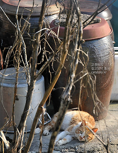 길고양이가 걷는 만리장성 사람마다 즐겨 다니는 길이 있습니다. 이 지점에서 저 지점으로 다니는 가장 빠른 길을 선호하는 사람, 주변에 풀과 나무가 많아서 보는 즐거움이 있는 예쁘고 아기자기한 길을 선호하는 사람, 지름길보다 돌아가더라도 오가는 사람이 많고 가로등도 많아서 음침하지 않아 보이는 길을 최우선적으로 선택하는 사람. 그럼 길고양이가 선호하는 길은 어떤 것일까요? 길고양이가 즐겨 다니는 길은 사람이 쉽사리 자신에게 접근할 수 없는, 만리장성처럼 높고 길다란 담벼락 위의 길입니다. 인간의 눈으로 보기엔 그저 낡고 허술한 담벼락에 지나지 않지만, 길고양이의 작은 발로 꾹꾹 즈려밟으며 지나다니는 그 길은, 어떤 적의 도발도 쉽게 발견할 수 있고 또 잽싸게 방어태세를 취할 수 있는 곳입니다. 비록 길고양이를 위해 지어진 시설은 .. 2010. 6. 2. 길고양이, 세파에 시달린 중년의 눈빛 흰색 물감에 퐁 담갔다 꺼낸 것처럼 꼬리 끝만 하얀 길고양이를 만났습니다. 강한 아이라인 속에 금빛 눈동자가 번뜩이는 고등어 무늬의 고양이입니다. 먹이를 찾다 저와 눈이 딱 마주친 고양이의 눈에 경계심이 가득합니다. 세상 물정 다 알아버린 중년의 눈빛. 저 고양이도 어느 평범한 집에서 태어났다면 "우리 고등어, 아이라인도 참 예쁘다"는 칭찬에 내심 우쭐대며 당당한 모습을 보여주었을 것입니다. 그러나 길 위에서의 거친 삶은 고양이의 얼굴을 세파에 찌든 아저씨로 만들어 버렸습니다. 길고양이는 경계심을 풀지 못할 때 낮은 포복으로 이동합니다. 잔뜩 수그린 상체와 힘껏 모아쥔 앞발에는 금방이라도 달아날 수 있도록 발가락 하나하나 힘이 들어갔습니다. 그 모습이 꼭, 주눅들어 어깨 펴지 못하고 걷는 아저씨 같습니다.. 2010. 5. 31. 호기심 많은 길고양이의 돌출행동 엉뚱한 행동을 일삼는 어린 길고양이는 가끔 예측 불가능한 돌출행동을 합니다. 이날도 촐싹거리며 고양이 아줌마 아저씨에게 덤벼들어 놀자고 귀찮게 하다가, 별 호응을 받지 못하니 슬그머니 자리를 뜹니다. 보통 잰걸음으로 제 곁을 슝슝 빠져나가곤 했기 때문에, 이번에도 그러려니 생각했습니다만... 헉, 갑자기 고개를 번쩍 들더니만 카메라 렌즈에 얼굴을 바짝 들이댑니다. "아줌마, 뭐해요? 이건 왜 자꾸 내미는 거예요?" 고양이의 천진한 눈망울이 이렇게 말하는 듯하네요. 너무나 갑작스레 일어난 일이라 초점은 저멀리 안드로메다로... 눈높이를 고양이에게 맞춰서 납작 엎드려 있었더니, 사람은 잘 보이지 않고 카메라만 유독 고양이 눈에 도드라져 보여서 궁금했나 봅니다. "에이, 별 것도 없고만..." 심드렁해진 어린.. 2010. 5. 28. 둥글넙적한 길고양이 얼굴, 볼수록 매력 조금은 험상궂은 외모에, 두툼한 살집까지 두목의 포스를 풍기는 길고양이. 저는 두목냥이라고 부르고 있습니다. 한 지역을 오랫동안 차지하고 살며 터줏대감 노릇을 해온 고양이에게는 어울리는 별명이라 생각해요. 보통 고양이는 얼굴이 역삼각형을 기본으로 양 볼에 살이 붙은 모습이지만, 두목냥은 고양이과 동물의 얼굴 윤곽을 찾아볼 수 없을 만큼 둥글둥글한 얼굴이 되었습니다. 제게 눈을 살짝 찌푸려주며 "얼른 가라!" 하고 엄포를 놓지만 제 눈에는 귀엽기만 한데요. 그래도 저보다 더 어른(고양이 나이를 환산하면 장년층으로 추정)이니 마냥 귀여워할 수만도 없겠네요. 아저씨의 자존심이 있으니까요. 두목냥의 둥그런 얼굴은 정면에서 보았을 때 더욱 빛을 발한답니다. 완전히 동그란 모습이면 앳된 느낌이 들지만, 아래위로 슬.. 2010. 5. 28. 늦잠 자다 깬 길고양이, 심통난 얼굴 해가 뉘엿뉘엿 넘어가려는 시간, 늦잠자던 길고양이도 일어나 활보하기 시작할 무렵이건만, 이 녀석은 어젯밤 열심히 달렸는지 아직 정신을 차리지 못하고 곤히 잠들어 있습니다. 장독대 뒤편은 발길이 드물어 사람의 눈에 띄지 않을 걸로 믿고 은신처로 삼은 모양이지만, 그래도 사방이 트인 곳이라 완벽하게 몸을 숨길 수는 없는데 너무 태평합니다. 그래도 예민한 고양이 귀는 늘 열려 있어서, 작은 바스락 소리에도 귀가 쫑긋 서고 눈이 번쩍 떠집니다. 의외의 장소에서 눈이 마주치니, 몰래 풀밭에 실례하다 들킨 사람처럼 뻘쭘해하는 것이 느껴져서 귀엽습니다. 고양이 귀는 마징가 귀가 되고, 표정도 샐쭉해졌네요. 고양이는 무슨 생각을 하고 있을까요? "아 뭐야~ 한 두 시간 더 자도 되는 거였는데..." 하고 제게 내심 불.. 2010. 5. 27. 길고양이를 위한 '특별한 찻집'의 사연 배고픈 길고양이들이 찾아왔을 때 바로 확인해 대처할 수 있다면 얼마나 좋을까? 막연히 상상했던 길고양이 전용 인식장치를 실제로 운용 중인 찻집이 있어서, 찾아가 보았습니다. 아담한 찻집 안에 들어서면, 꽤 큼직한 우체국 택배상자가 바닥에 놓여있습니다. 가게 입구에 웬 택배 상자인가 싶어 고개를 숙이고 들여다보면, 삼색고양이 한 마리가 단잠을 자고 있습니다. 찻집 앞에 상주하던 이 길고양이는 인근 식당에 출몰하는 쥐를 모조리 잡아주어 이웃 주민에게 두루 사랑을 받았답니다. 그러나 크게 앓아 동물병원 신세를 진 뒤로 그냥 거리에 놔둘 수 없어서, 찻집을 운영하던 사
