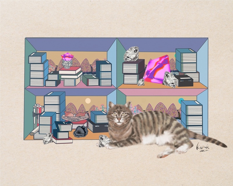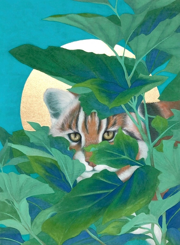 다만 호랑이는 고양잇과 동물 중에 가장 큰 고양이라 말할 수 있으니, 우리 주변에 있는 호랑이 같은 고양이를 살펴 그려보는 것도 현대 영모화라 할 수 있겠다. 오늘날의 고양이는 벽사의 기능을 하진 않으나, 사람들의 마음을 수호하고 반려동물로 자리매김했기 때문이다. 이런 이유에서 ‘호랑이 같은 고양이’를 주제로 현대 영모화를 그려보았다. 전통적인 책거리와 그 앞에 당당히 앉은 우리나라 고양이를 함께 표현함으로써, 오늘날 반려의 의미를 생각해 보고자 한다. (인스타그램 @suyeon.kwak)