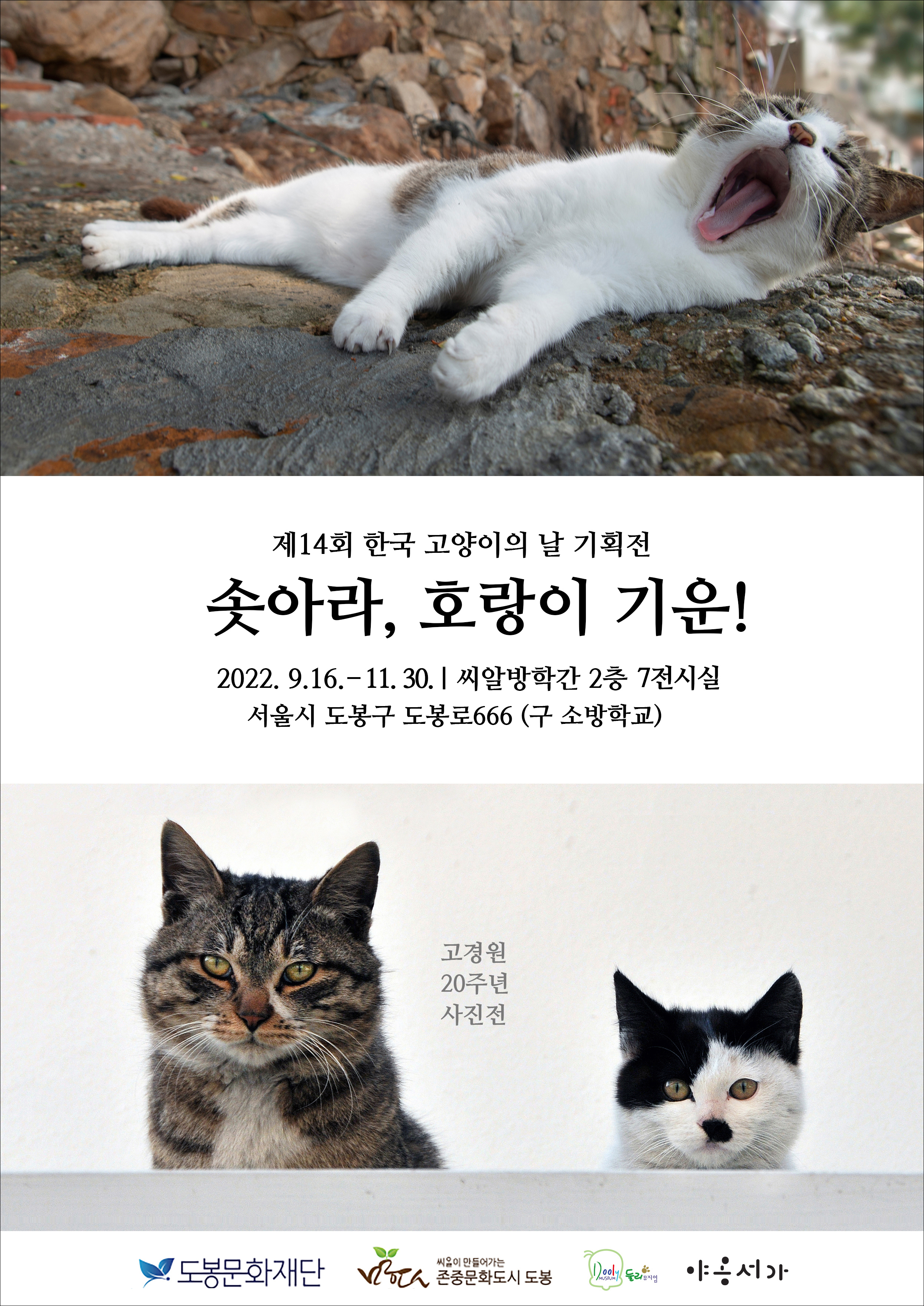 구 소방학교 건물을 리모델링한 문화공간 ‘씨알방학간’에서 열리는 <솟아라, 호랑이 기운!>展은 2022년부터 길고양이의 삶을 사진과 글로 기록해 온 고경원 작가의 20주년을 기념하는 길고양이 사진전이다. 이번 전시에는 작가가 지난 20년간 만나 온 고양이 중에서도, 유독 호랑이 같은 당찬 기운을 담은 고양이들의 사진을 전시한다.