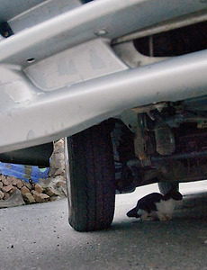 1300K , 텐바이텐, 바보사랑 판매중(사이트명 클릭하면 이동합니다^ㅅ^) 사람들이 무심코 지나치는 자동차 아래, 가만히 보면 길고양이가 쉬고 있습니다. 언제 차가 들고 날지 모르기에 조금은 불안한 마음도 있지만, 그래도 사방이 뚫려 경계하기 쉽고, 달아나기도 쉬운 이곳에 일단 몸을 숨깁니다. 고등어 아줌마와 젖소무늬 아기냥 셤이, 삼색 아기냥 꼬리가 한 자리에 모였습니다. 똑같은 식빵 자세 같지만, 앉은 자세를 가만히 보면 각자의 성격을 알 수 있습니다. 셤이는 가장 앞줄에 고개를 쑥 빼고 있고, 고등어 아줌마는 아직 어린 꼬리 곁에서 떠나지 않습니다. 자동차 밑 은신처에 갑자기 나타난 인기척에 꼬리의 가슴은 두근두근, 놀란 토끼 눈동자가 되었습니다.이쪽까지 떨리는 심장소리가 들려올 것 같아요. 하지..