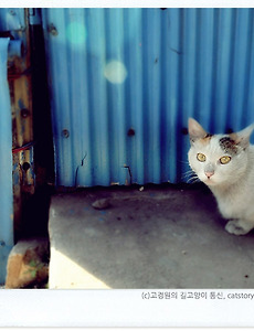 해바라기 닮은 금빛 눈의 길고양이 [알림] 제 블로그의 다음view 구독이웃이 되시려면 오른쪽 메뉴바 고양이 얼굴 위에 있는 파란색 + 버튼을 눌러보세요. RSS를 등록하지 않아도 새 글이 올라올 때마다 http://v.daum.net/my에서 편리하게 읽어볼 수 있습니다. (다음넷 로그인 후 구독가능) * 트위터: @catstory_kr * 한국트위터모임 '길고양이당' 가입은 http://bit.ly/bwgvRr 해가 슬금슬금 지기 시작하는 느지막한 오후, 그늘 밑에서 햇빛을 피하던 고양이들은 하나둘 거리로 나섭니다. 비탈길을 오르내리던 사람들의 발길이 잦아들기 시작하는 저녁이면, 식빵 자세로 소일하던 고양이도 착착 접어넣었던 앞다리를 펴고 먹이를 구하러 일어납니다. 언제까지나 한가롭게 누워있을 수는 없지요. 인간에게는 지친 하루를 마.. 2010. 6. 6. [폴라로이드 고양이] 006. 진짜 용기 알라딘 교보문고 예스24 인터파크 "또 만났네, 근데 오늘은 상대해주기 힘들겠다. 내가 좀 바빠서." "난 지금 가장 소중한 걸 지키는 중이거든." 그 길고양이는 저를 보고도 잽싸게 달아나지 않았습니다. 처음엔 그간 제 얼굴을 자주 봤으니 낯이 익어서 그런가 싶었습니다. 고양이를 만나러 오가는 길에 종종 출몰하는 녀석이라 조금은 친숙해졌거든요. 그런데 고양이의 태도가 평소와는 다른 듯합니다. 함께 시간을 보내다가도 다른 볼일이 생각났다는 듯 제 갈길을 찾아 사라지곤 하던 녀석인데, 오늘은 껌딱지처럼 늘어붙어 움직일 생각을 하지 않습니다. 그래서 그냥, 아직은 햇빛이 따가워 그늘에만 있으려나 보다, 하고 생각했습니다. 궁금증은 그리 오래 가지 않았습니다. 양철벽 틈새 너머로 어떤 소리가 들려왔으니까요. 작.. 2010. 6. 5. [폴라로이드 고양이] 005. 고양이 젤리, 곰돌이 젤리 고양이라면 누구나 젤리를 갖고 있습니다. 이른바 '곰돌이 젤리'라는 것인데요. 네 개의 발바닥에 말랑한 쿠션 재질이 있어서 고급 신발에 장착된 에어쿠션처럼 뛰어내릴 때 충격을 완화하는 역할을 합니다. 고양이 젤리라고 하지 않고, 곰돌이 젤리로 부르는 이유는 발바닥의 제일 넓은 면이 테디베어의 얼굴과 두 귀를 꼭 닮았고, 네 발가락은 각각 테디베어의 팔다리 모양 같아서 그렇답니다. 포도젤리처럼 까맣던 발바닥은 흙먼지로 희뿌옇게 변하고 , 야들야들 부드러웠던 분홍색 젤리에 굳은 살이 생기고 때가 낍니다. 길고양이들이 때때로 발바닥을 열심히 핥는 건, 뭔가 달콤한 위로가 그 안에서 스며나오기 때문 아닐까요. 인간이 고양이의 폭신폭신한 발바닥을 어루만지며 위로를 받는 것처럼. 길고양이의 발바닥 젤리를 보면서 짠.. 2010. 6. 3. 식빵에서 등나무로 변신한 길고양이 천년 묵은 여우는 사람으로 변신을 한다지만, 그건 전래동화 속에서나 나오는 이야기다 싶지요. 하지만 우리 주변에 흔한 길고양이도 나름대로 자신의 장기를 활용해서 변신할 줄 안답니다. 단, 이것은 아무 고양이나 할 수 있는 것은 아니니 섣불리 따라하다 인간에게 혼쭐 나는 길고양이가 없길 바랍니다. 길고양이 변신술에 가장 필요한 것은 주변 환경이니까요. 이 길고양이는 처음 만났을 때 잘 구운 식빵의 모습을 하고 있었습니다. 계란물로 한껏 무늬를 낸 카스테라처럼, 고운 줄무늬를 온몸에 바르고 있었지요. 저를 빤히 바라보는 고양이는 뭔가 재미있는 것을 보여주겠다는 눈빛을 보내고 있었습니다. "나는 사실 등나무로 변신할 줄 안다옹." "아니, 지금 그 표정은 내 말을 믿지 못하겠다는 거냐옹?" 제가 뜨악한 표정.. 2010. 6. 2. 길고양이가 걷는 만리장성 사람마다 즐겨 다니는 길이 있습니다. 이 지점에서 저 지점으로 다니는 가장 빠른 길을 선호하는 사람, 주변에 풀과 나무가 많아서 보는 즐거움이 있는 예쁘고 아기자기한 길을 선호하는 사람, 지름길보다 돌아가더라도 오가는 사람이 많고 가로등도 많아서 음침하지 않아 보이는 길을 최우선적으로 선택하는 사람. 그럼 길고양이가 선호하는 길은 어떤 것일까요? 길고양이가 즐겨 다니는 길은 사람이 쉽사리 자신에게 접근할 수 없는, 만리장성처럼 높고 길다란 담벼락 위의 길입니다. 인간의 눈으로 보기엔 그저 낡고 허술한 담벼락에 지나지 않지만, 길고양이의 작은 발로 꾹꾹 즈려밟으며 지나다니는 그 길은, 어떤 적의 도발도 쉽게 발견할 수 있고 또 잽싸게 방어태세를 취할 수 있는 곳입니다. 비록 길고양이를 위해 지어진 시설은 .. 2010. 6. 2. [폴라로이드 고양이] 004. 등받이 길고양이 두 마리가 햇빛 아래 몸을 옹송그리고 잠을 청합니다. 은신처에 숨어 편히 누워서 자면 될 텐데, 마침 따끈하게 데워진 돌방석 위를 떠나기가 싫었던 모양입니다. 엉덩이는 엉거주춤 붙이고 꾸벅꾸벅 조는 모습이, 어디에든 머리를 좀 기댔으면 하는 눈치입니다. "웅...졸리긴 한데... 그냥 자긴 불안하고...." "나한테 기대면 되잖아. 얼른 코 자" "정말? 그럼 너만 믿고 잔다." "..." 말은 그렇게 해 놓고 둘 다 곤히 잠들어 버렸습니다. 서로 기대니 편안했나 봅니다. 누군가와 약속을 잡았을 때 오래 앉아 얘기할 일이 생기면, 등받이 의자가 있는 곳인지 아닌지부터 먼저 살피게 됩니다. 척추디스크 진단을 받은 뒤로, 등을 기대지 않고 오래 앉아 있으