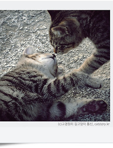길고양이, 세파에 시달린 중년의 눈빛 흰색 물감에 퐁 담갔다 꺼낸 것처럼 꼬리 끝만 하얀 길고양이를 만났습니다. 강한 아이라인 속에 금빛 눈동자가 번뜩이는 고등어 무늬의 고양이입니다. 먹이를 찾다 저와 눈이 딱 마주친 고양이의 눈에 경계심이 가득합니다. 세상 물정 다 알아버린 중년의 눈빛. 저 고양이도 어느 평범한 집에서 태어났다면 "우리 고등어, 아이라인도 참 예쁘다"는 칭찬에 내심 우쭐대며 당당한 모습을 보여주었을 것입니다. 그러나 길 위에서의 거친 삶은 고양이의 얼굴을 세파에 찌든 아저씨로 만들어 버렸습니다. 길고양이는 경계심을 풀지 못할 때 낮은 포복으로 이동합니다. 잔뜩 수그린 상체와 힘껏 모아쥔 앞발에는 금방이라도 달아날 수 있도록 발가락 하나하나 힘이 들어갔습니다. 그 모습이 꼭, 주눅들어 어깨 펴지 못하고 걷는 아저씨 같습니다.. 2010. 5. 31. [폴라로이드 고양이] 003. 고양이 같은 친구 맨몸으로 차가운 바다에 내던져진 것처럼 슬픔이 목까지 차올라 숨쉴 수 없을 만큼 힘겨운 날, 고양이처럼 말없이 다가와 곁에 있어주는 것만으로도 힘이 되는 사람이 있습니다. 나와 많이 다른 사람, 때론 '쟤 참 이상하다' 여겼던 사람, 내가 울적할 때마다 썰렁한 농담 시리즈를 이것저것 주워섬기다, 어이가 없어서 피식 웃으면 드디어 웃겼다며 뿌듯해하는 사람. 마음을 받는 것보다 주는 것이 더 기쁘다는 걸 가르쳐 준 사람. 그런 친구가 있습니다. 일이 쓰나미처럼 몰려와 정신을 차릴 수 없을 때, 더 이상 일어나 싸우기가 힘들어서 차라리 그대로 잠들어 눈을 뜨고 싶지 않을 때도, 묵묵히 어깨 두들기며 위로해주는 사람. 슬픔의 무게를 두려워하지 않고 나눠지는 사람, 함께 있는 순간의 침묵을 불편히 여기지 않고 즐.. 2010. 5. 29. 호기심 많은 길고양이의 돌출행동 엉뚱한 행동을 일삼는 어린 길고양이는 가끔 예측 불가능한 돌출행동을 합니다. 이날도 촐싹거리며 고양이 아줌마 아저씨에게 덤벼들어 놀자고 귀찮게 하다가, 별 호응을 받지 못하니 슬그머니 자리를 뜹니다. 보통 잰걸음으로 제 곁을 슝슝 빠져나가곤 했기 때문에, 이번에도 그러려니 생각했습니다만... 헉, 갑자기 고개를 번쩍 들더니만 카메라 렌즈에 얼굴을 바짝 들이댑니다. "아줌마, 뭐해요? 이건 왜 자꾸 내미는 거예요?" 고양이의 천진한 눈망울이 이렇게 말하는 듯하네요. 너무나 갑작스레 일어난 일이라 초점은 저멀리 안드로메다로... 눈높이를 고양이에게 맞춰서 납작 엎드려 있었더니, 사람은 잘 보이지 않고 카메라만 유독 고양이 눈에 도드라져 보여서 궁금했나 봅니다. "에이, 별 것도 없고만..." 심드렁해진 어린.. 2010. 5. 28. 둥글넙적한 길고양이 얼굴, 볼수록 매력 조금은 험상궂은 외모에, 두툼한 살집까지 두목의 포스를 풍기는 길고양이. 저는 두목냥이라고 부르고 있습니다. 한 지역을 오랫동안 차지하고 살며 터줏대감 노릇을 해온 고양이에게는 어울리는 별명이라 생각해요. 보통 고양이는 얼굴이 역삼각형을 기본으로 양 볼에 살이 붙은 모습이지만, 두목냥은 고양이과 동물의 얼굴 윤곽을 찾아볼 수 없을 만큼 둥글둥글한 얼굴이 되었습니다. 제게 눈을 살짝 찌푸려주며 "얼른 가라!" 하고 엄포를 놓지만 제 눈에는 귀엽기만 한데요. 그래도 저보다 더 어른(고양이 나이를 환산하면 장년층으로 추정)이니 마냥 귀여워할 수만도 없겠네요. 아저씨의 자존심이 있으니까요. 두목냥의 둥그런 얼굴은 정면에서 보았을 때 더욱 빛을 발한답니다. 완전히 동그란 모습이면 앳된 느낌이 들지만, 아래위로 슬.. 2010. 5. 28. 길고양이를 위한 '특별한 찻집'의 사연 배고픈 길고양이들이 찾아왔을 때 바로 확인해 대처할 수 있다면 얼마나 좋을까? 막연히 상상했던 길고양이 전용 인식장치를 실제로 운용 중인 찻집이 있어서, 찾아가 보았습니다. 아담한 찻집 안에 들어서면, 꽤 큼직한 우체국 택배상자가 바닥에 놓여있습니다. 가게 입구에 웬 택배 상자인가 싶어 고개를 숙이고 들여다보면, 삼색고양이 한 마리가 단잠을 자고 있습니다. 찻집 앞에 상주하던 이 길고양이는 인근 식당에 출몰하는 쥐를 모조리 잡아주어 이웃 주민에게 두루 사랑을 받았답니다. 그러나 크게 앓아 동물병원 신세를 진 뒤로 그냥 거리에 놔둘 수 없어서, 찻집을 운영하던 사장님은 아예 가게 한켠에 보금자리를 내주었다고 합니다. 같이 놀아주면 좋으련만, 한참 낮잠 잘 시간이라 그런지 고양이는 그저 눈만 꿈뻑할 뿐 상자.. 2010. 5. 27. 내겐 가장 아름다운 피사체, 길고양이 옥상 물탱크 밑 그늘진 자리에 길고양이 한 마리가 고단한 몸을 누입니다. 방금 전까지만 해도 이곳은 제게 아무런 의미 없는 시멘트 벽이었습니다. 하지만 고양이가 이 자리를 쉼터로 선택한 순간, 제 눈 앞에는 커다란 캔버스 하나가 놓입니다. 손톱만 한 카메라 뷰파인더를 통해 고양이가 있는 풍경을 이리저리 담다 보면, 어느새 여러 장의 그림이 머릿속에 펼쳐집니다. 학교를 졸업하고 나서 오랫동안 그림을 놓았다고 생각했는데, 돌이켜보면 사진을 찍으면서도 머리 속으로는 그림을 그리고 있습니다. 눈앞에 보이지 않는 가늠선을 그려 풍경을 자르고, 상상 속의 