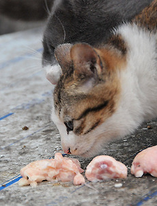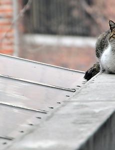 고양이도 우울할 때가 있다 고양이도 우울함을 타는 시기가 있습니다. 놀아달라고 큰 소리로 불렀는데 사람은 별 반응이 없다거나, 약을 먹거나 수액주사를 맞는 등 하기 싫은 일을 어쩔 수 없이 해야할 때가 그렇습니다. 스밀라가 문 앞에서 큰 소리로 불렀는데 급히 해야할 일이 있어 시간을 지체했더니, 저렇게 담요 위에 몸을 축 늘어뜨리고 무기력하게 누워있습니다. 쓰다듬어줘도 그릉그릉도 하지 않고 시큰둥입니다. "나는 시방 위험한 짐승이다." 반만 뜬 눈과 납작한 귀로 불편한 심기를 온몸으로 뿜어내고 있습니다. 그래도 옆에서 계속 달래주고 놀아주니 눈매가 좀 부드러워지는 것 같아요. 코앞에서 얼굴을 들이대면 시선을 살짝 피합니다. 그 모습이 제 눈에는 은근히 사랑스럽게 보이네요. 저를 보지 않는 척 시선을 먼 곳으로 향하고 있지만, 사실.. 2010. 4. 21. 길고양이들의 '식빵굽기 대결' 길을 걷다보면 안전한 곳에서 식빵 굽는 길고양이를 만납니다. 무심한 얼굴로 날아가는 새를 지켜보는 모습에서 긴장이란 찾아볼 수 없습니다. 덩치며 인상이며, 이래저래 왕초의 기운이 느껴지는 길고양이입니다. 그런데 고양이의 얼굴에 순간 긴장이 감돕니다. 뭔가 위협적인 상대를 만났기 때문일까요? 두 앞발에 힘이 들어갑니다. "응? 내가 뭘요?" 5m쯤 떨어진 눈앞에, 젖소무늬 고양이가 의아한 눈으로 왕초고양이를 바라보고 있네요. 온몸으로 동그랗게 표현한 식빵 자세가 예사롭지 않습니다. 왕초 고양이의 눈이 경쟁심으로 불타오르기 시작하는 듯합니다. "감히 네 녀석 따위가 내 앞에서 식빵 자세를 자랑하다니...질 수 없어!" 뭐 이런 대사가 머릿속에 자동재생되는군요; "훗! 하지만 나를 이길 순 없을걸요. 난 엉덩.. 2010. 4. 16. 오뚜기 같은 뒤태의 길고양이 동글동글한 고양이의 뒤태는 언제나 사랑스럽습니다. 쓰다듬을 불러오는 뒷모습인데요. 오뚜기처럼 동그란 몸으로 고개만 살짝 돌려 저를 돌아보는 고양이와 눈이 마주쳤습니다. 올해 1월경 처음 만났던 아기 고양이가 3개월간 이만큼 자라, 이제 청소년 고양이가 다 되었습니다. 고양이들도 눈의 표정이 저마다 달라, 이 얼룩무늬 고양이는 유독 슬픈 눈을 하고 있습니다. 한쪽 눈썹이 쳐져 있어서 더욱 그런 듯합니다. 길고양이가 이렇게 촉촉히 젖은 눈으로 저를 바라볼 때면, 어찌해야 좋을지 모르겠습니다. 뭐라도 하나 더 주고 싶고... 고양이라면 무조건 좋아하는 저에게도 유독 마음 가는 고양이가 있거든요. 금방이라도 입을 열어 사람의 말을 건넬 것 같지만, 보일락말락 벌린 입에서 나오는 소리는 희미한 '에웅에웅' 소리뿐.. 2010. 4. 15. 지붕 위로 유배된 길고양이 가족 땅을 밟지 못하고 지붕 위에서만 살아야 하는 길고양이들이 있습니다. 힘이 약한 엄마고양이가 세력싸움에 밀려 지붕으로 피신하면서 결국 그 위에서 새끼를 먹이고 기르게 된 것입니다. 근처 길고양이들에게 15년이 넘게 밥을 줘 왔다는 어르신을 만나 듣게 된 사연입니다. 길고양이를 만나러 갈 때면 가까운 곳에 연세 지긋한 어르신이 가끔 계시곤 했는데 혹시 고양이에게 안좋은 소리를 하지 않을까 하는 걱정에 슬쩍 자리를 피하곤 했습니다. 그런데 그 날은 제가 먼저 와 있을 때 어르신께서 묵묵히 다가오셔서 고양이 밥을 주는 걸 보고, 조심스레 여쭙게 되었습니다. 동네 정육점에서 닭을 다듬고 남은 부산물이나, 혹은 식당에서 남은 잔반을 얻어다가 지금껏 줘왔다고 합니다. "지구상에 사는 생명이 인간뿐이 아닌데, 고양이도.. 2010. 3. 22. 콧잔등이 홀랑 벗겨진 길고양이 길고양이를 만나러 돌아다니다보면, 콧잔등이 벗겨진 녀석과 마주치곤 합니다. 눈 온 다음날 만난 이 녀석도 그랬습니다. 콧잔등에 점 두 개가 마치 딱지처럼 보이는 데다가, 콧잔등까지 털이 벗겨져서 인상은 좀 사납게 보입니다만, 길고양이에게 콧잔등이 벗겨지는 일은 흔한 것입니다. 눈동자가 보이지 않고 흰 안광만 번쩍번쩍 빛나 보이는 것은 발아래 녹지 않은 눈이 반사되어서 그렇습니다. 위로 한껏 올려다보고 있어서 잘 안 보일 뿐이지, 동공은 저를 향해 있습니다. 콧잔등이 벗겨지는 건 그리 깨끗하지 못한 음식물 찌꺼기에 코를 파묻고 먹을 것을 찾아야 하는 일상생활 탓에 오염물질과 접촉이 잦아 피부병에 노출될 우려도 있고, 차가운 눈밭에 코를 대고 먹이를 구하는 탓도 있는 듯합니다. 고양이가 쉬는 자리는 쉽게 사.. 2010. 3. 14. 목을 180도 회전시키는 길고양이 따끈한 봄햇살을 쬐며 길고양이 한 마리가 낮잠에 빠졌습니다. 깨우지 않으려고 조심조심 가까이 다가가 봅니다. 부스럭 소리에 잠을 깬 길고양이가 번쩍 눈을 뜨고 돌아봅니다. 얌전한 5:5 가르마를 탔습니다. 정면을 향해 있던 얼굴이 180도 회전해 등 뒤를 경계합니다. 모 공포영화에서 귀신 들린 등장인물이 몸은 그대로인채 목만 빙글빙글 회전시켜 뒤를 돌아볼 때처럼 거침이 없습니다. 고양이 몸의 유연성을 다시 한번 실감하게 됩니다. 먹이를_노리는_매의_눈빛.jpg 인간이 휴식시간에 끼어드는 것이 싫었던지, 잽싼 발걸음으로 자리를 피합니다. 떠나가는 고양이 발바닥에 얌전히 달라붙은 곰돌이 모양 분홍젤리가 작