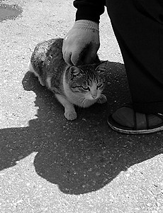 이태원 고양이 이태원의 한 음식점 근처에 사는 길고양이. 사람을 피하지 않는다. 목장갑 낀 손으로 목덜미를 쓰다듬어도 가만히 있다. 아저씨의 그늘이 가장 편하고 안전한 곳이기라도 한 것처럼 바닥에 몸을 붙였다. 귀와 꼬리의 변화를 보고 있으면, 고양이의 감정 표현이 얼마나 미세한 차이로 표현될 수 있는지 느낀다. 귀는 마징가 귀. 몸 한쪽으로 붙였던 꼬리는 살짝 들어 흔들흔들. 길고양이에게는 포즈를 취해달라고 부탁할 수 없다. "이제 노는 모습을 보여줘, 이렇게 걷는 건 어때?"하고 말하는 건 불가능한 일이다. 길고양이를 찍을 때는, 기껏해야 경계를 풀도록 천하장사 소세지를 던져주거나, 아니면 무심한 것처럼 멀리 떨어져서 바라보다가 조금씩 다가가는 수밖에 없다. 하지만 다가가기 어려워서 더 그럴까, 길고양이가 선심 쓰.. 2006. 4. 22. 붉은 빛 빨간색 필터를 쓴 것처럼 보이지만, 실은 스트로보를 터뜨리는 순간 바로 앞에 있던 플라스틱 의자 색깔이 반사되면서 이렇게 됐다. 오토 레벨을 한 번 하고 나니, 윗부분은 다시 푸른 기운이 돈다. 고양이가 숨어있는 세계와, 고양이가 바라보는 바깥 세계가 두 색깔로 분리된 것 같은 묘한 사진이다. 옆에서 불이 번쩍이거나 말거나, 고양이는 조각상처럼 꼼짝 않고 앉아 있다. 저 무심함이 때론 부럽다. 2006. 4. 15. 종로매점 플라스틱 의자 밑, 은신처 어제도 여전히 같은 자세로 의자 밑에 앉아 있던 안국고양이. 앞발을 얌전히 모으고 앉아 지나가는 사람들을 바라볼 때, 살짝 끄트머리만 보이는 발끝의 느낌이 좋다. 시도해보지는 못했지만, 손가락으로 콕 눌러보고 싶어진다. 2006. 4. 15. 봄고양이 고양이 수염도 바람에 한들한들. 파스텔고양이가 된 밀레니엄고냥. 2006. 4. 1. 고속터미널 고양이 지난 여름에 처음 만난 후로 다시 못 본 고속터미널 고양이. 날이 풀렸으니 근처에 혹시 나왔을까, 오늘 한번 가볼 계획이다. 2006. 3. 18. 사찰서 들고양이 포획 뒤 안락사 예정? 네티즌 항의 빗발 살생을 금하는 것은 불교의 가장 큰 핵심 사상 중 하나다. 그러나 들고양이로 인한 사찰 및 주변 상인들의 불편함, 생태계 교란 등을 이유로 들며, 들고양이 포획 계획을 추진 중인 곳이 있어 논란이 되고 있다. 3월 2일자 인터넷 부산일보 보도에 따르면, 환경부 산하 낙동강유역환경청은 최근 국립공원관리공단 가야산사무소로부터 포획계획 동의요청서를 받아, 다음 달부터 경남 합천군 가야산 해인사 인근의 들고양이 포획에 나설 예정이다. 가야산 일대에 서식하는 들고양이 85여 마리가 국립공원 구역인 해인사 일대에 모여들어 사찰 음식을 훔쳐 먹거나 인근 상가 80여 곳의 쓰레기봉투를 찢어놓고, 생태계를 교란하는 등 등 불편을 야기하는 데 따른 것이다. 이 신문은 또한 “낙동강유역환경청은 일단 쥐를 잡을 때 사용하는 .. 2006. 3. 7. 이전 1 ··· 99 100 101 102 103 104 105 ··· 120 다음